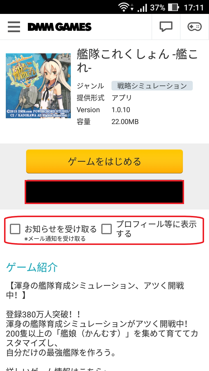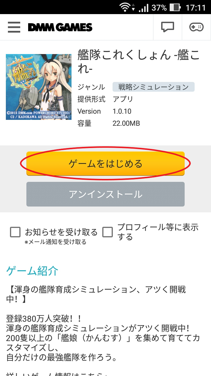 </p><p>After the download and installation is complete the game page will look like this. You can now play KanColle by pressing the yellow button or using the Kancolle app.
