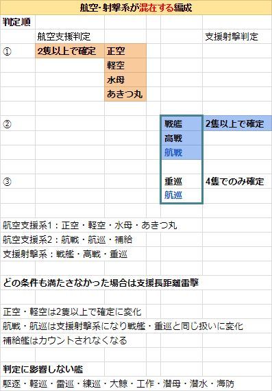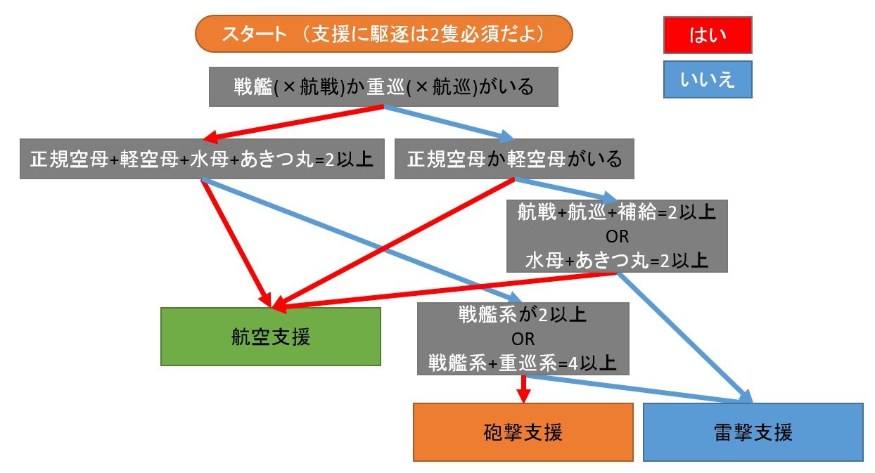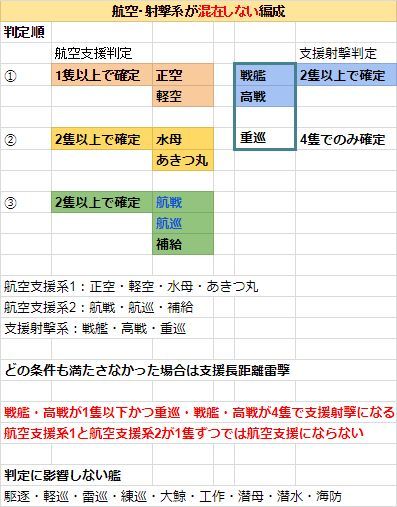 - 優先順位は航空支援>支援射撃系。どちらでもなければ支援長距離雷撃
