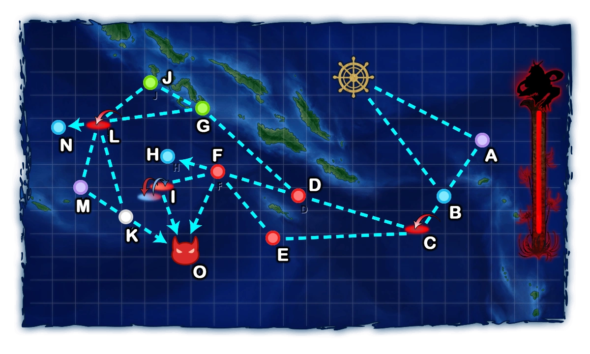 - Cần phải hạ gục Boss bản đồ 4 lần để hoàn thành bản đồ. (Boss có thể là Aircraft Carrier Demon hoặc là Standard Carrier Wo-Class Kai Flagship nên hãy cẩn trọng khi đến Boss node)