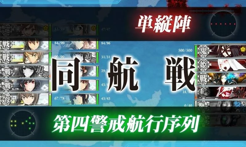 | Đánh đêm | Đánh theo thứ tự từ trên xuống, các tàu bị thiệt hại trung bình trở xuống mới tham gia được. Mẫu hạm không tham chiến (trừ Graf Zeppelin và các dạng của CV Wo) | ||