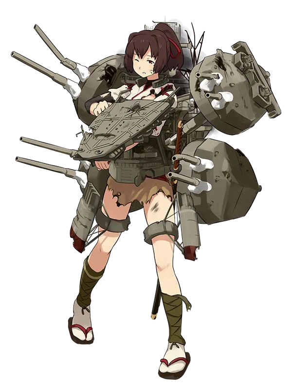 航空戦艦「伊勢」です!後部飛行甲板とカタパルト2基で航空戦力を運用可能よ | Em là thiết giáp hạm hàng không 'Ise'! Với một sàn đáp và hai bệ phóng phía sau, Em có sức mạnh hàng không! | |
