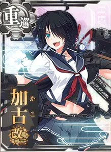古鷹型重巡の2番艦、加古ってんだ。あ、知ってった?今日もよっろしくぅー!(Kai Ni) |