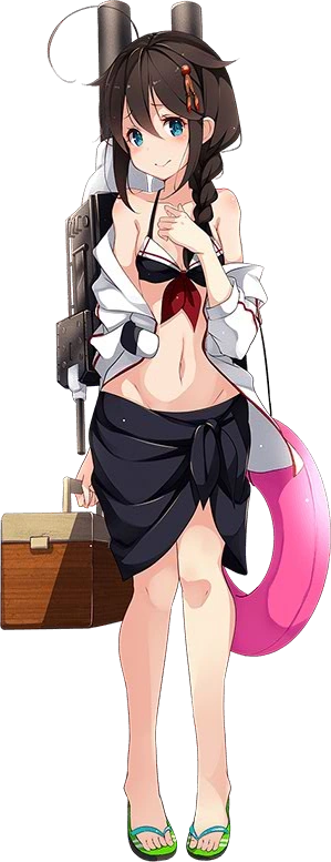 僕は白露型駆逐艦2番艦の時雨だよ。あのレイテ沖海戦では、西村艦隊に所属して、運命のスリガオ海峡に突入したんだ。扶桑も山城も凄かったよ……。皆が忘れても、僕だけはずっと覚えているから……。 | Em là tàu thứ 2 của lớp khu trục hạm Shiratsuyu, Shigure ạ. Em đã ở trong hạm đội Nishimura trong trận chiến định mệnh tại Eo biển Suriga của Vịnh Leyte. Cả Fusou và Yamashiro đều rất tuyệt vời đấy ạ... Cho dù mọi người có quên thì, em vẫn sẽ luôn luôn nhớ đến họ... | |