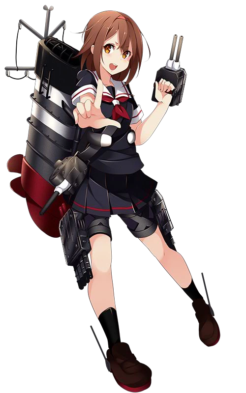 Xây dựng từ lớp Khu trục đoàn lớp Hatsuharu, lớp Shiratsuyu, số một, em là Shiratsuyu! Đúng vậy đấy, số 1, chiếc tàu đầu tiên! Với rất nhiều nâng cấp. Em là một Khu trục hạm thực sự đấy, anh biết không! Eh? "Đừng có vội vã đến nỗi đâm phải tàu chở dầu" sao? Đừng lo về chuyện đó! |