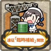 - Nhiệm vụ D25 phải được hoàn thành để có thể nhận được phần thưởng là (遠征「臨時補給」開放) cho phép chức năng này hoạt động.