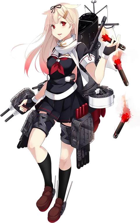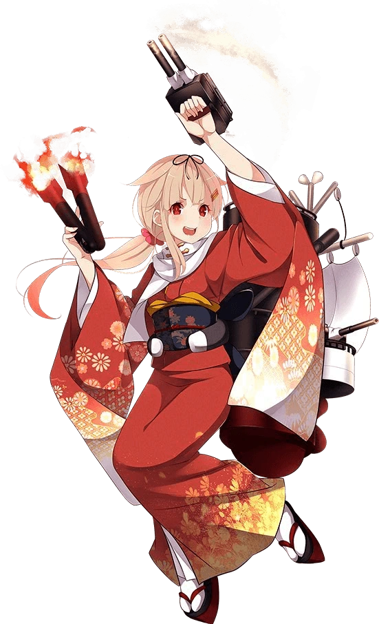 Em là tàu thứ tư của lớp khu trục hạm Shiratsuyu, Yuudachi đấy ạ. Trong Trận chiến thứ Ba tại Quần đảo Solomons em đã cố gắng rất nhiều đúng không poi? Nhưng mà nhân tiện thì, cái từ "Ironbottom Sound" đúng là đáng sợ phải không anh? | Yuudachi dẫn đầu chiến tuyến bắn phá đảo Guadalcanal vào ngày 12 tháng 11. Tuy nhiên, em ấy đã chịu rất nhiều thiệt hại và Samidare đã cứu hầu hết thủy thủ đoàn của em ấy. USS Portland không lâu sau đã đánh chìm em ấy ngoài khơi Đảo Savo. Ngay trong vùng biển "Ironbottom Sound" | |