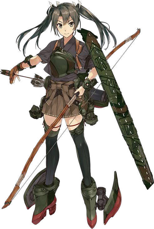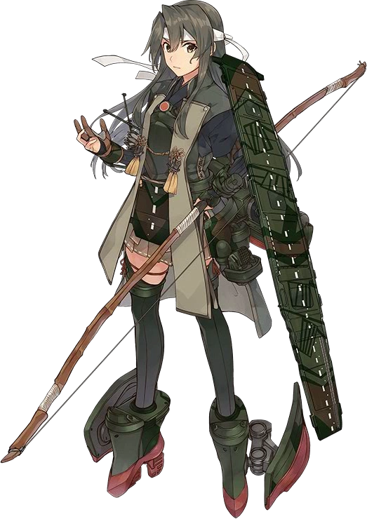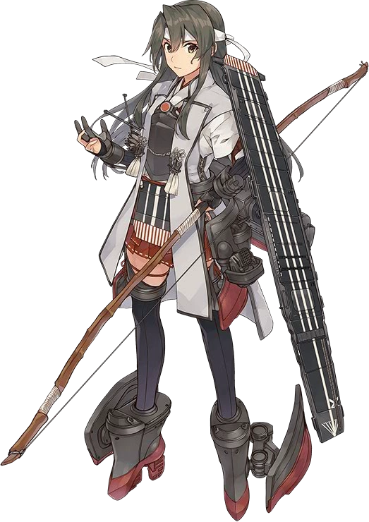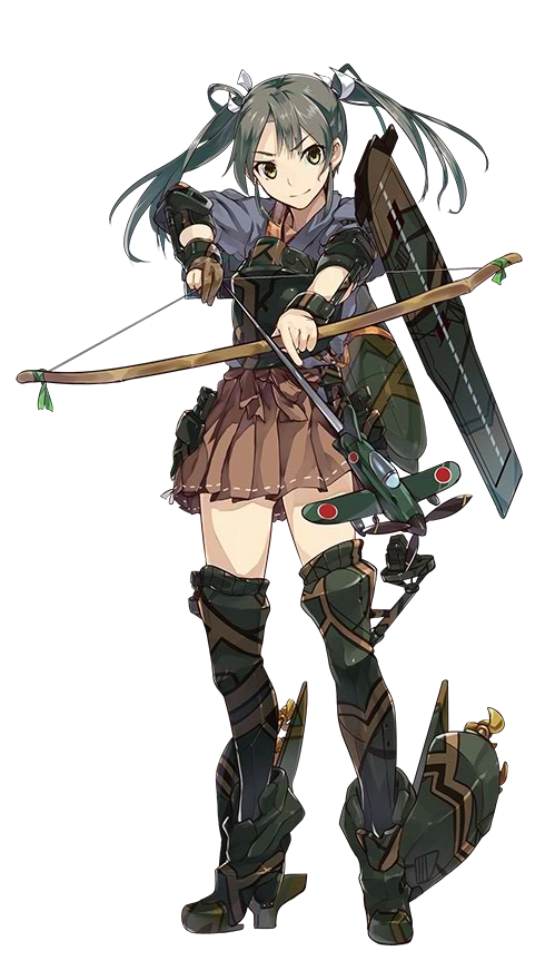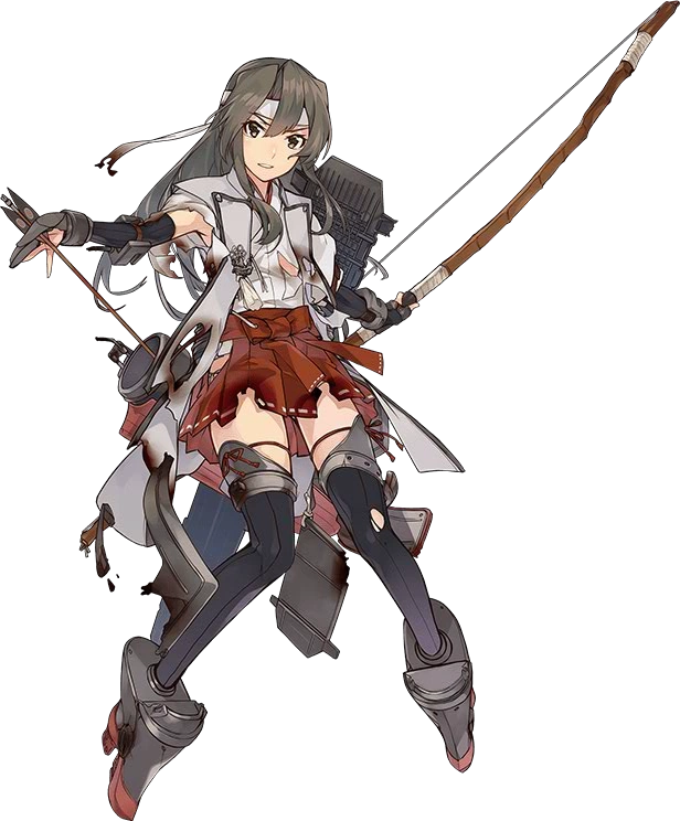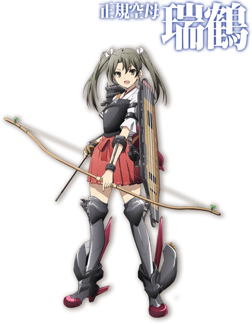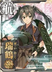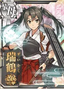 Hàng không mẫu hạm thứ hai lớp Shoukaku, em gái Zuikaku. Mẫu hạm may mắn ư? Điều đó không phải đâu, em chỉ chiến đấu với tất cả sức mạnh của mình. Chỉ cần có máy bay, em sẽ không thua đâu! | (Lúc mất, Zuikaku đã mất toàn bộ máy bay) |