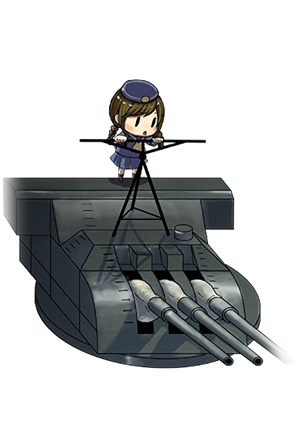 Equipped by Mogami-class cruisers before they were converted into heavy cruisers by swapping their gun into 20.3 cm turrets. The Mogami-class was designed as a heavy cruiser, but the naval treaty at the time defined cruiser types by main gun caliber so it was a sort of regulation loophole. The other ships that also equip this are the Yamato-class battleship and the Ooyodo-class light cruiser, while the Tone-class heavy cruisers were originally planned to use these guns.