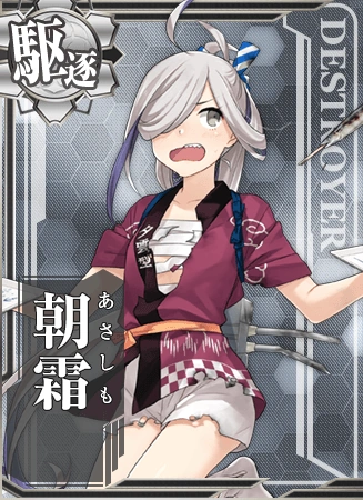 | Introduction | よぉ!あたいは夕雲型駆逐艦十六番艦の朝霜さ。覚えといてよ、忘れんなよ…なぁ! | Yo! I'm Asashimo, 16th Destroyer of the Yuugumo Class. Please remember. Don't forget about me... ok? | ||