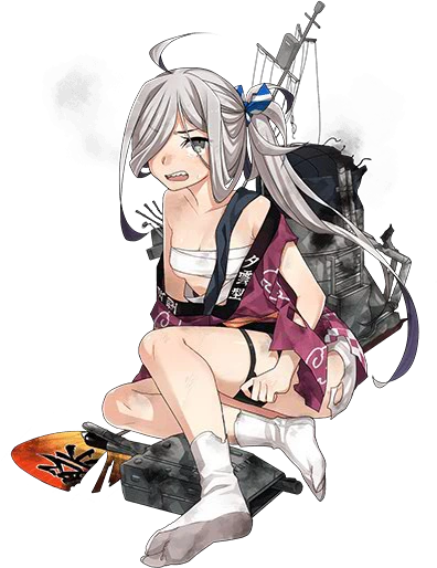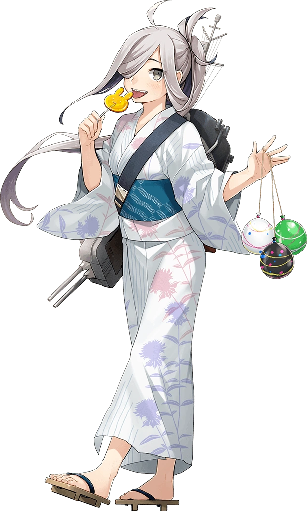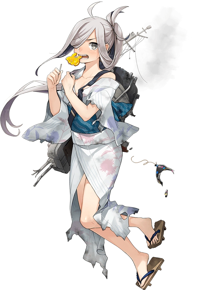 - Sunk in action by aircraft from carrier USS San Jacinto in Operation Ten-Go, due to engine trouble. Her Secretary (idle) Kai line makes reference to this, as the three mentioned destroyers were also involved in the same operation.