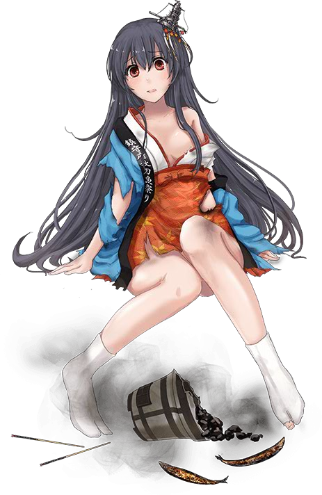 山城、節分よ。この豆を、歳の数だけ食べるの。後、鬼役にね、投げるのよ。 | Yamashiro, it's Setsubun ... You eat a number of these beans based on how old you are ... Then, you throw the rest at those who play the Demon ... | |