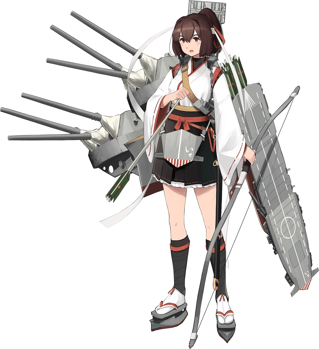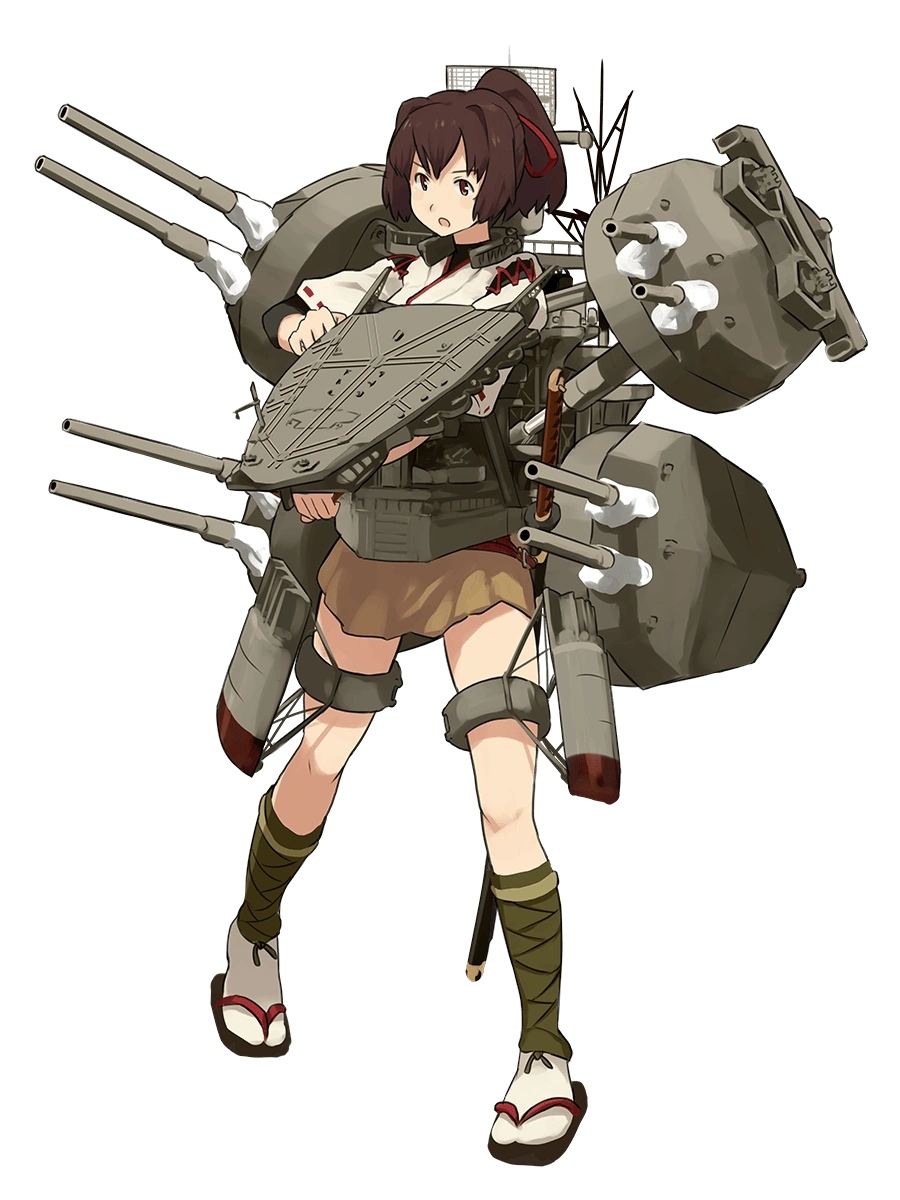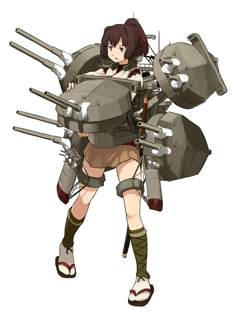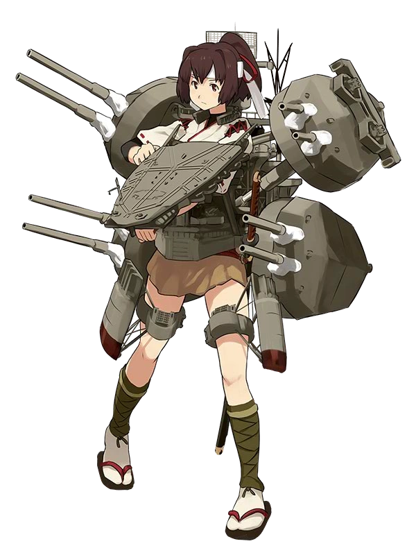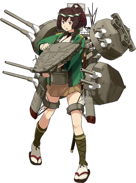 - In her combat gear, she is surrounded on all sides by five huge turrets with double-barreled cannons. (Practically obscuring her form.) A radar array pokes up from her back, and two garter belt-like rings on her legs are studded with secondary turrets. In Kai form, the turret in the middle that covers her torso is exchanged for a triangular flight deck.