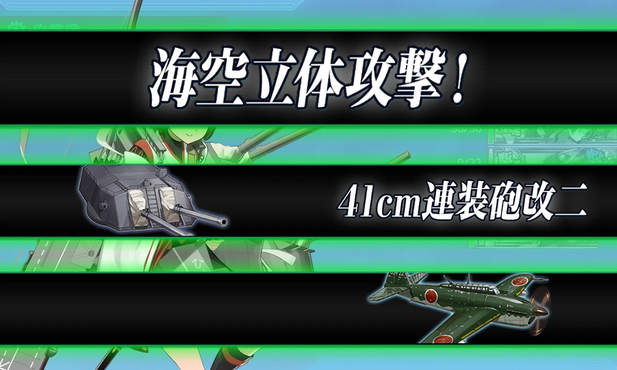 | Air Battle (Kai) | 主砲、四基八門、一斉射! | Main cannon, 4 rounds 8 shots, broadside fire! | ||