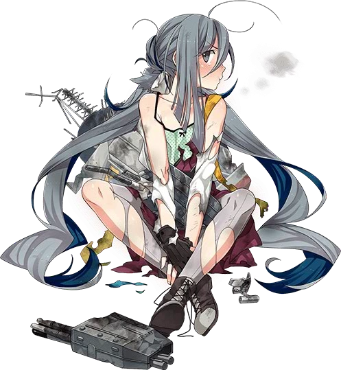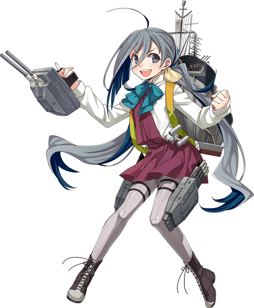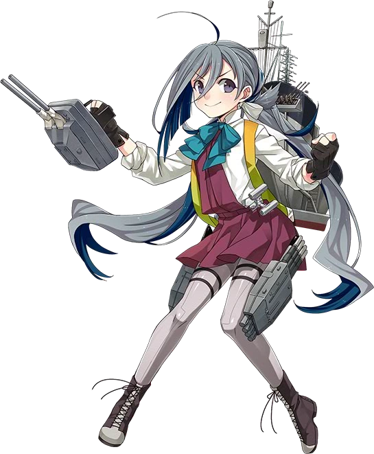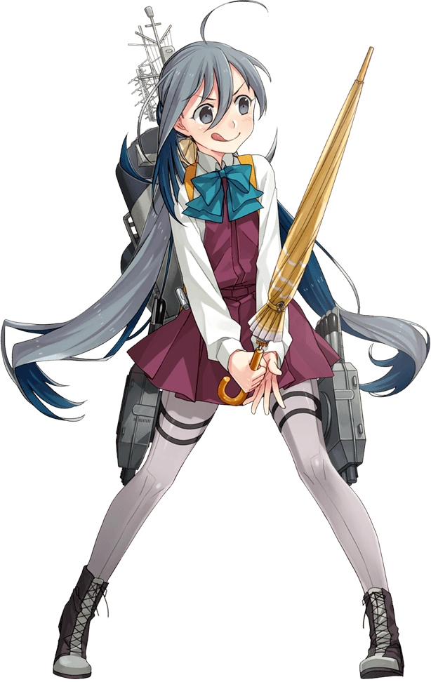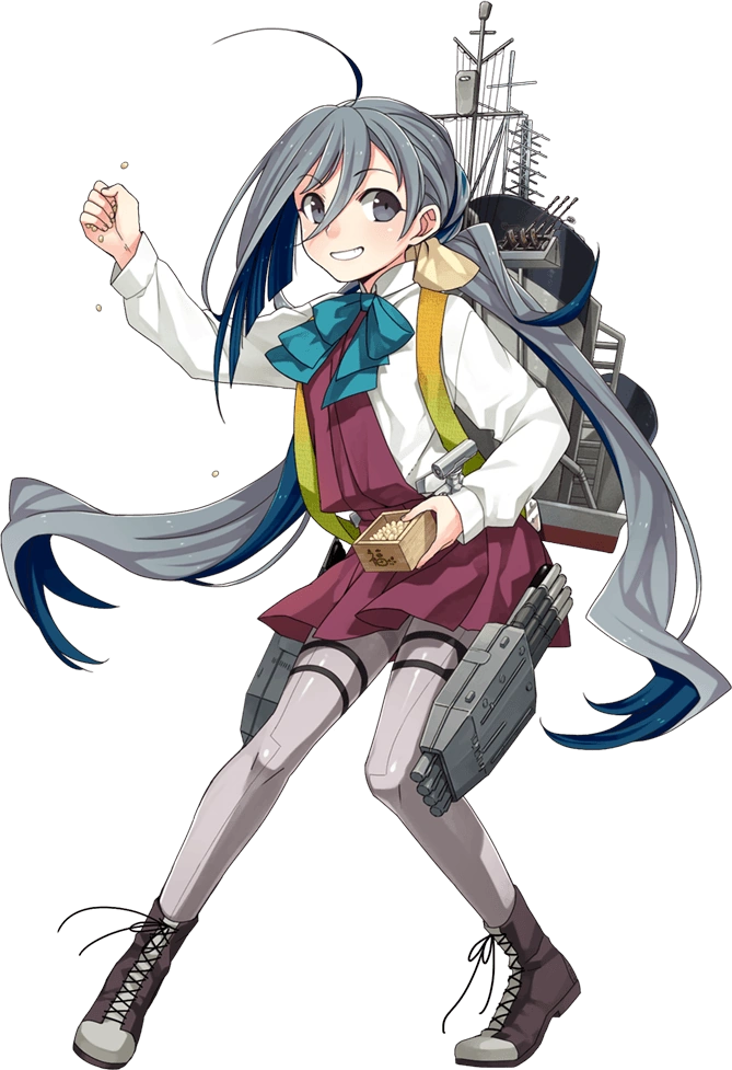 I'm Kiyoshimo, the 19th and last of the Yuugumo class destroyers. I was born in Uraga dontcha know. And goodness, what a horrible situation it was that I was born into too. I wasn't around for long but I took part in several fleet actions. Leyte was, of course, apalling to see but I even took part in Operation Rei-gou! How's that? |