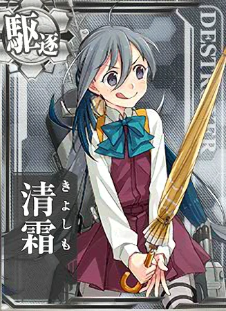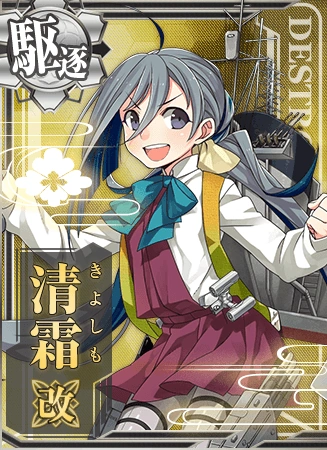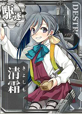 | Introduction | どうも!夕雲型の最終艦、清霜です。到着遅れました、よろしくお願いです! | Hello! Last of the Yuugumo-class, it's Kiyoshimo! I'm a bit late, but I'll be in your care! | ||