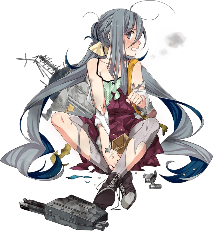 | Sunk | また…沈む…の?いいよ…みんな、先に行って…。敵、殴ったら…もどって…来て、ね…? | Am I... going to sink... again? It's fine... Everyone, go on ahead... Once you hit the enemy... come back, ok? | Like how Musashi was immobilized and left behind? | |