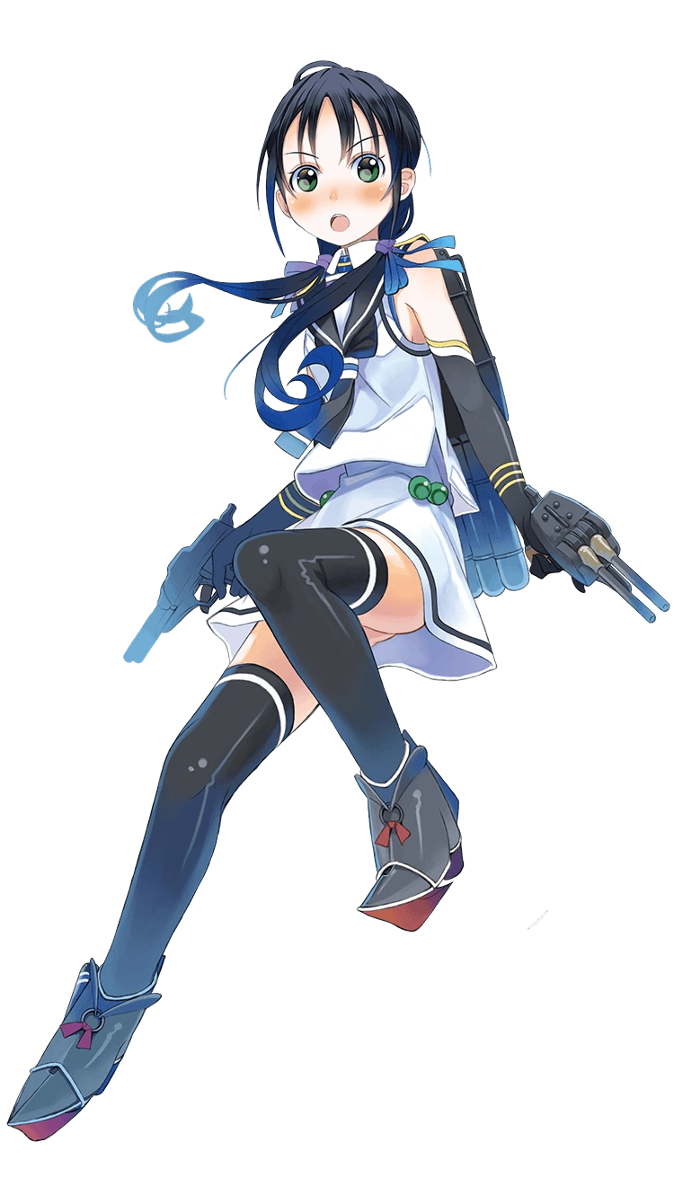- She is one of the "Shiratsuyu class Kai" destroyers that have received slight improvement over the preceding sister ships. Shiratsuyu class Kai has four sisters, "Umikaze (海風)" "Yamakaze (山風)" "Kawakaze (江風)" and her. She is the youngest of the ten Shiratsuyu-class destroyers.