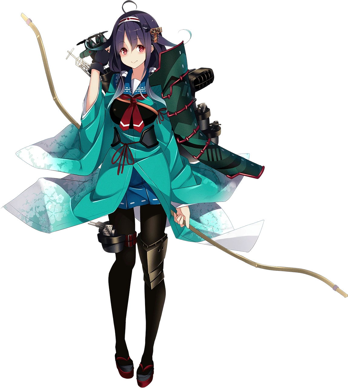 - As Ryuuhou Kai, her serafuku's collar is now green with white accents, as is her matching dress; similarly, she now wears a green kimono, but retains her muneate. Her necktie is now tied in a different manner, and gains a gold radar-shaped hairpin, located on her left hair flap, but loses her magatama. Her flight deck is now larger and gains a green color along with a camouflage pattern, and gains an extra AA turret located on her right knee. Her hair flaps now gradually fade to a green color, as opposed to gradually fading to white as Ryuuhou and Taigei.