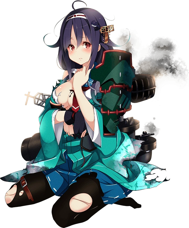 | Ryuuhou | やだ!飛行甲板の格納庫が!! | Oh no, my flight deck hangar! | Ryuuhou's hangar was hit by TF58 aircrafts on March 19, 1945. The attack effectively put her out of combat and she was left sitting in Kure on AA duties till the end of the war. | |