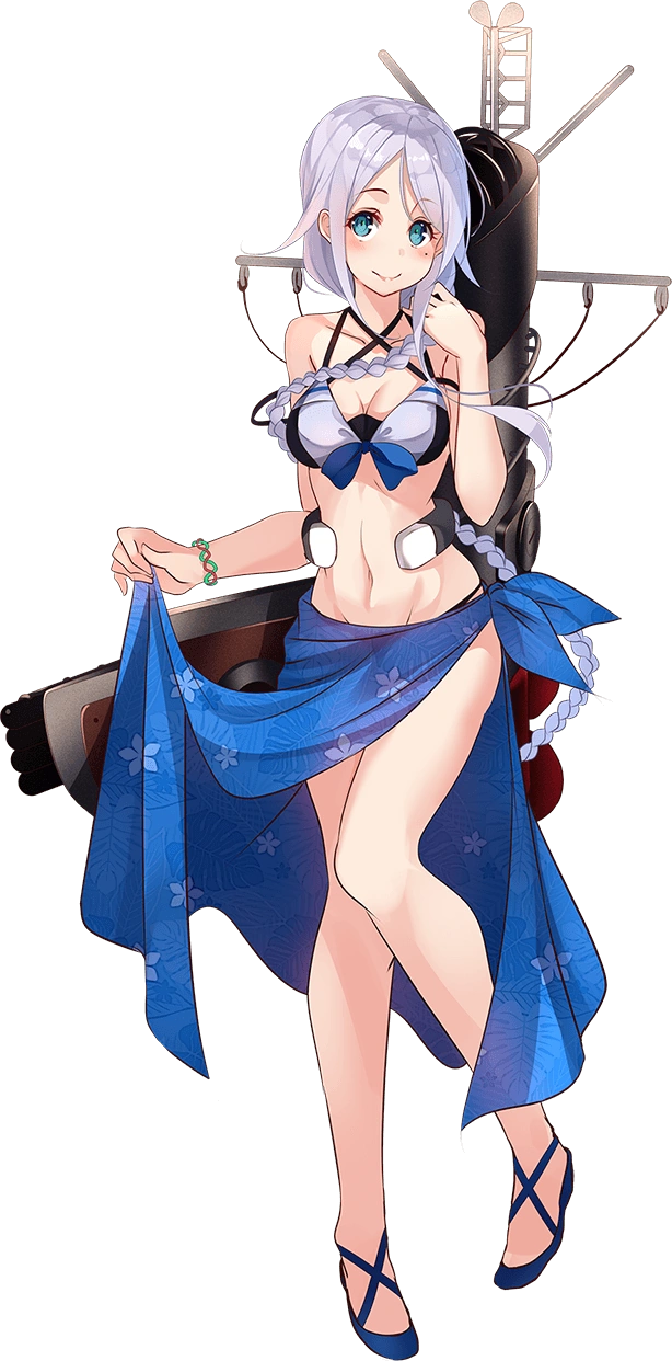 提督、夏ですね。日差しが本当に強いですね。あ、大丈夫です。一応肌にはオイル塗っています。てへへ♪ | Admiral, it is summer. The sun is really shining down hard. Ah, I am fine. I have put on some oil just in case. eheheh♪ | |