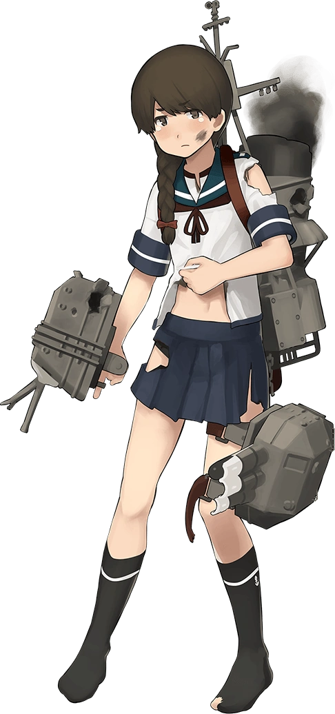- Although she is listed as a Special Type I (Fubuki-class) destroyer, she is actually of an intermediary design between the Types I and II, with the funnels of the later type but with the guns of the earlier type. As such, she wears a variant of the "basic" uniform: a blue-and-white short-sleevedserafuku but with a brown collar (blue sailor collar) and a brown neckerchief characteristic of Shibafu's Ayanami-class. She completes the set with a blue pleated skirt, black kneehighs, and a red ribbon on her braid.