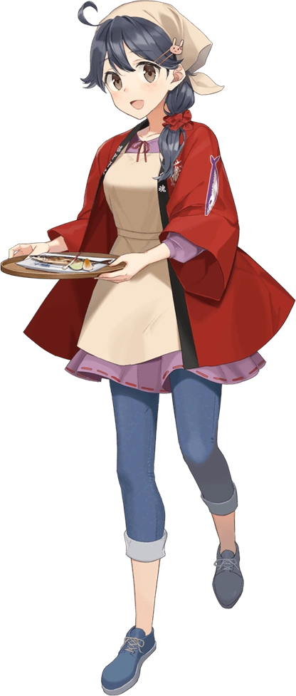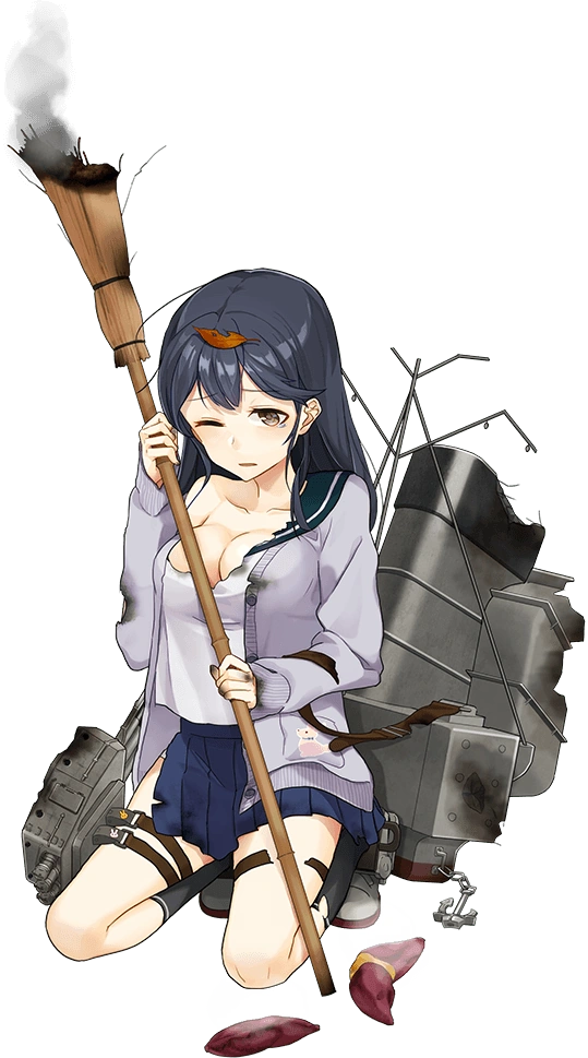 - She also has a seasonal CG for Autumn for both versions. Her unremodeled version features her wearing a lavender cardigan with a bunny on a while holding a bag full of sweet potatoes and a broom along with some dead leaves on and around her. For her second remodel, she also holds a grilledsaury plate and a tairyou-bata is secured to her gear.