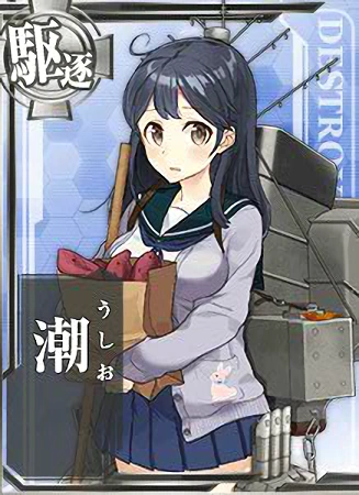 | Library | 綾波型10番艦の潮です。 レイテ沖海戦などの激戦を潜り抜け、運命のあの日、横須賀で御役目を終えるまで戦い抜きました。 あ、あの…沈めた敵艦の皆さんも…ホントはお助けしたいのです。ホントです! |