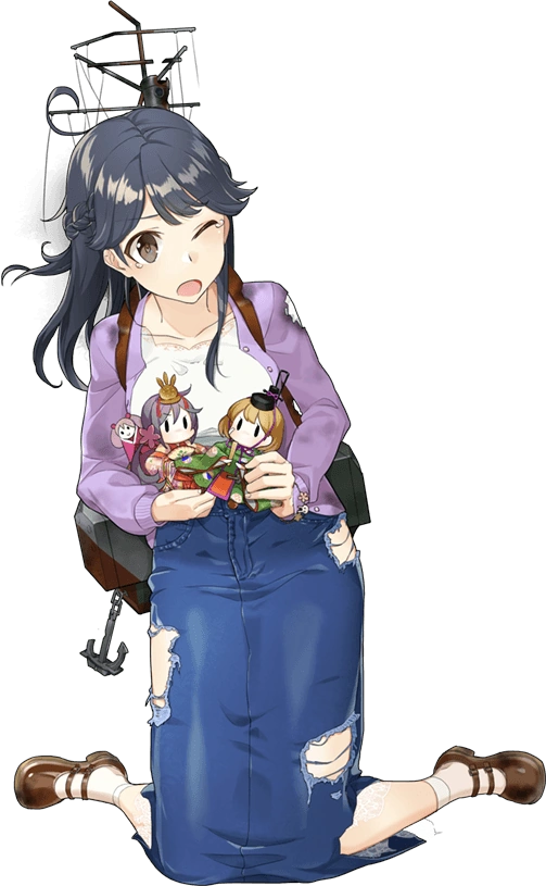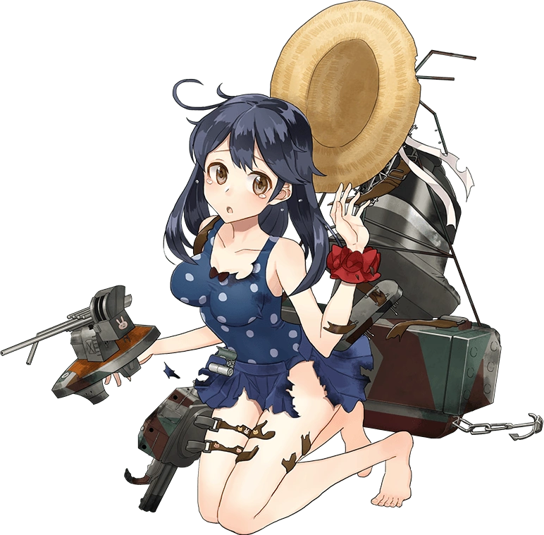 - In her second remodel (Kai Ni), she comes with green-and-brown camouflage painted on her rigging, boots and weapons. Her pink bunny-gun is replaced with a wrist-mounted double-barreled turret on her right arm, and a forearm-mounted pair of triple-barreled turrets on her left, reflecting her all-AA cannon loadout. A long white ribbon is worn like a headband, tied in a bow that flutters behind her, and she has depth charges worn looped on her skirt belt. When taking medium or heavy damage, her CG also now reveals she wears bear-print panties.