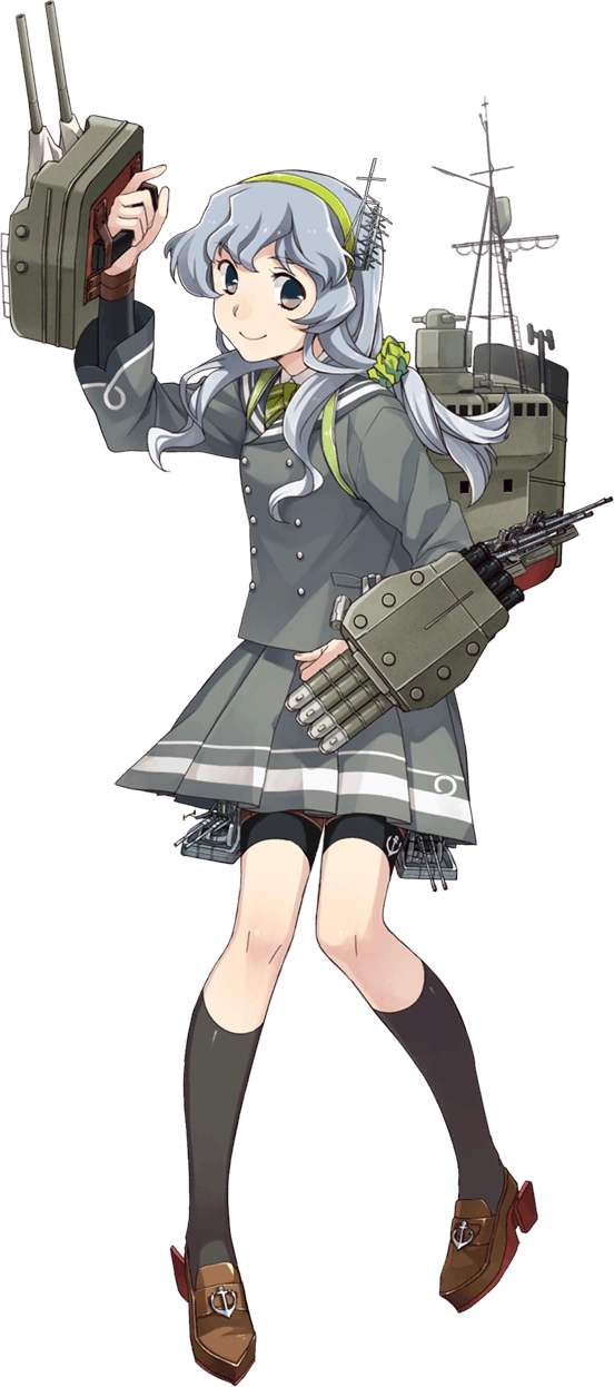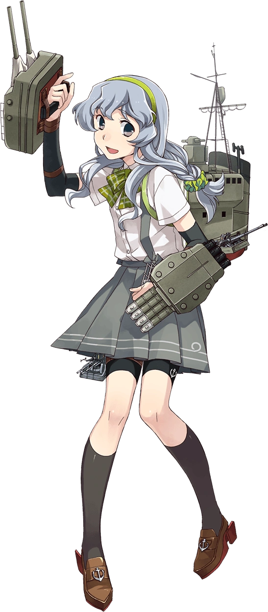 I'm the sixth Asashio-class destroyer, Yamagumo~ I was born in Osaka and raised in Yokosuka~ Uh-huh, I'll have to watch out for sea mines~ I was active in escort and patrol missions, then deployed to the Marianas and also Leyte Gulf as part of the Nishimura fleet~ |