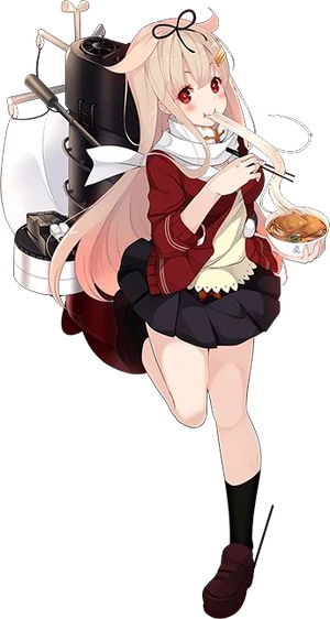 - Yuudachi's white sail was incorrectly seen as a flag of surrender, a fact that angered the Americans when she kept on fighting despite raising it. This sail can be seen in her Kai Ni artwork, and reflects the significance.